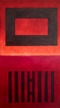 The red and orange colourfield of these panels celebrate Australia’s dry country. While global warming’s a coastal issue, the arid centre’s relatively unchanged and remains a mythical source of national identity. Potentially promising but threatening, it seems to mirror our enduring approach to indigenous culture